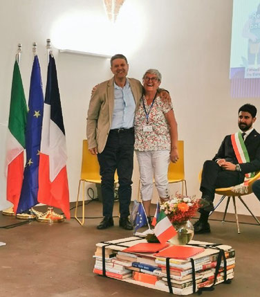 Le 23 août, chaque village est resté avec la municipalité jumelle. La délégation de Giove nous a conduit à Narni avec la visite par une guide en français de la ville souterrraine puis retour à Giove pour le déjeuner et la visite de la bibliothèque, de l’école et déambulation dans le centre historique. Nous avons assisté à un spectacle musical de lectures en plein air avant le diner final et l’échange de cadeaux et les “au revoir”, moments remplis d’émotion.